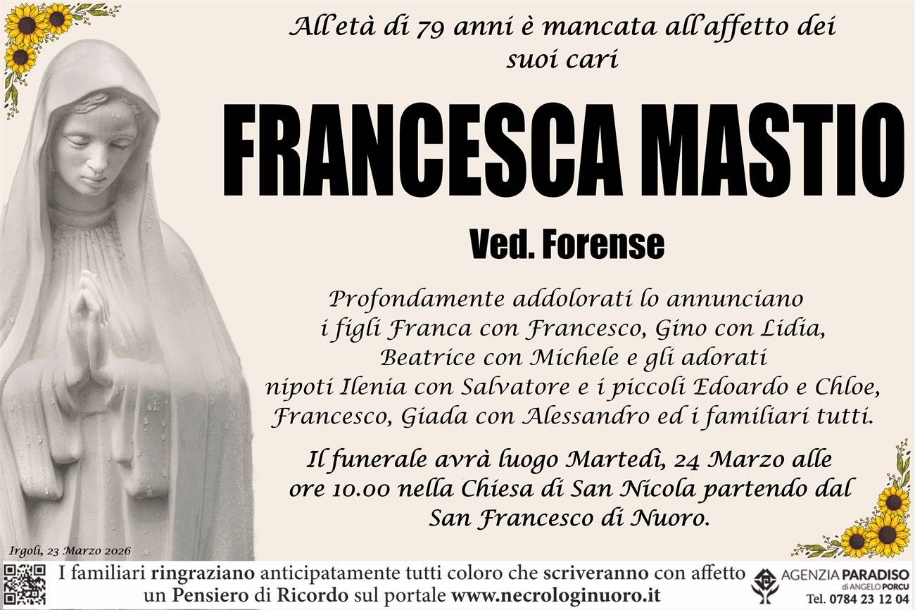I familiari ringraziano anticipatamente tutti coloro che parteciperanno alla cerimonia funebre e tutti coloro che scriveranno con affetto un Pensiero di Ricordo.