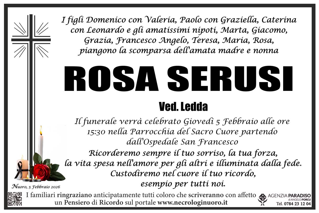 I familiari ringraziano anticipatamente tutti coloro che parteciperanno alla cerimonia funebre e tutti coloro che scriveranno con affetto un Pensiero di Ricordo.